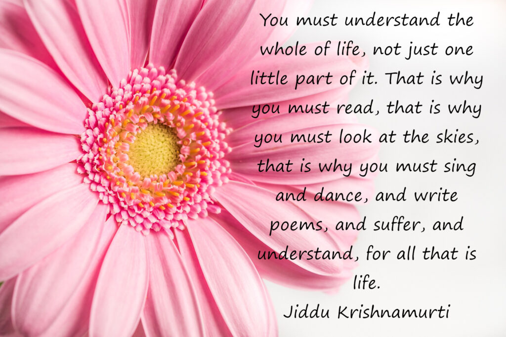 You must understand the whole of life, not just one little part of it. That is why you must read, that is why you must look at the skies, that is why you must sing and dance, and write poems, and suffer, and understand, for all that is life.