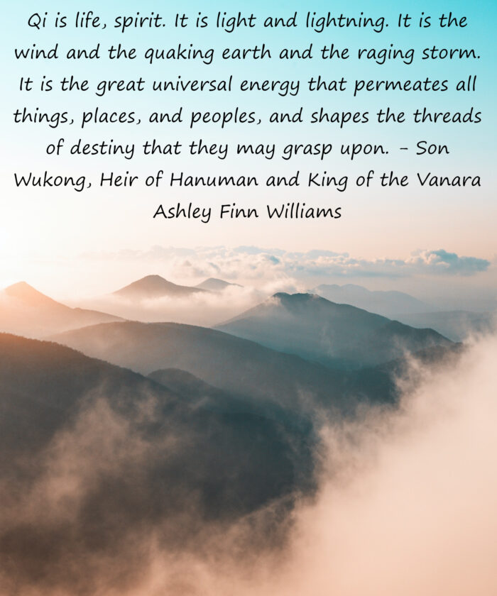 Qi is life, spirit. It is light and lightning. It is the wind and the quaking earth and the raging storm. It is the great universal energy that permeates all things, places, and peoples, and shapes the threads of destiny that they may grasp upon. – Son Wukong, Heir of Hanuman and King of the Vanara